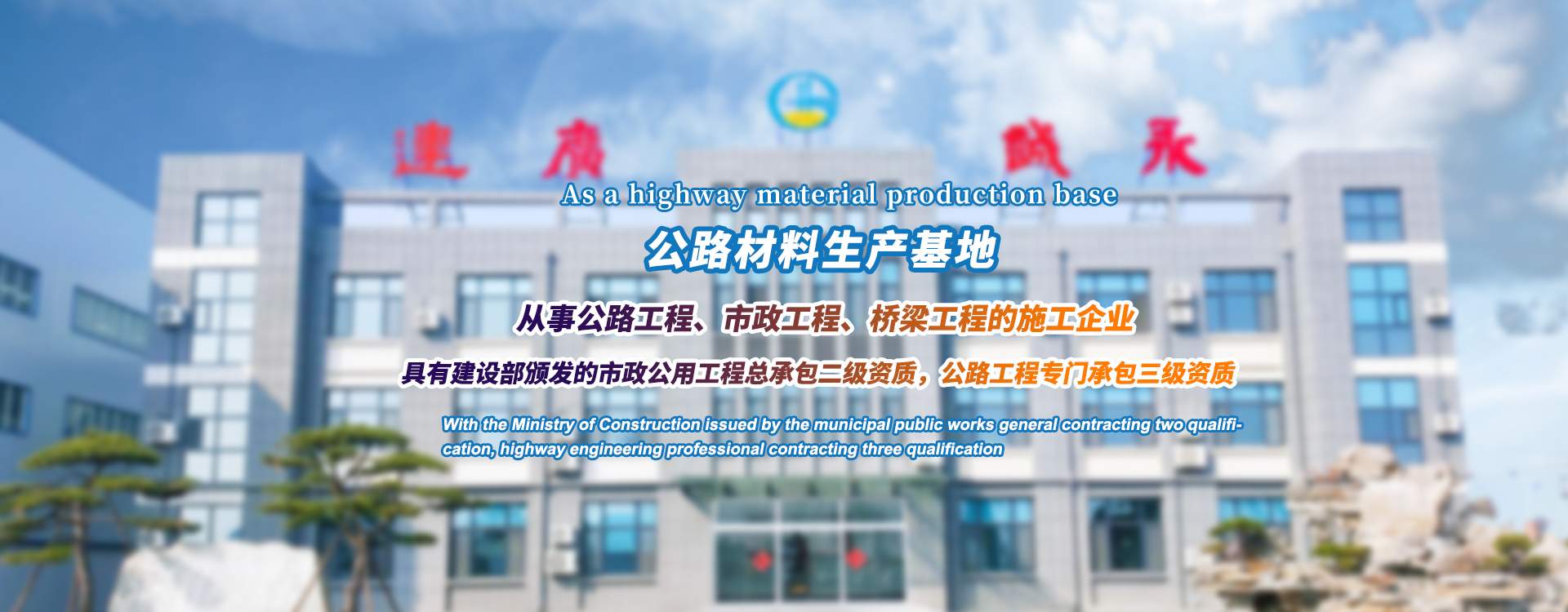 總部辦公樓及廠區,具有建設部頒發的市政公用工程總承包二級資質,公路工程承包三級資質,現有在建造師,工程技術和經濟管理人員多人團隊